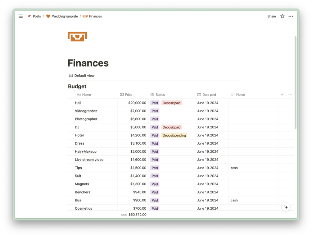 This is the only template you'll need to plan your wedding. We keep it simple and easy to use. This is the exact set-up my wife and I used to plan a wedding for 300 attendees.